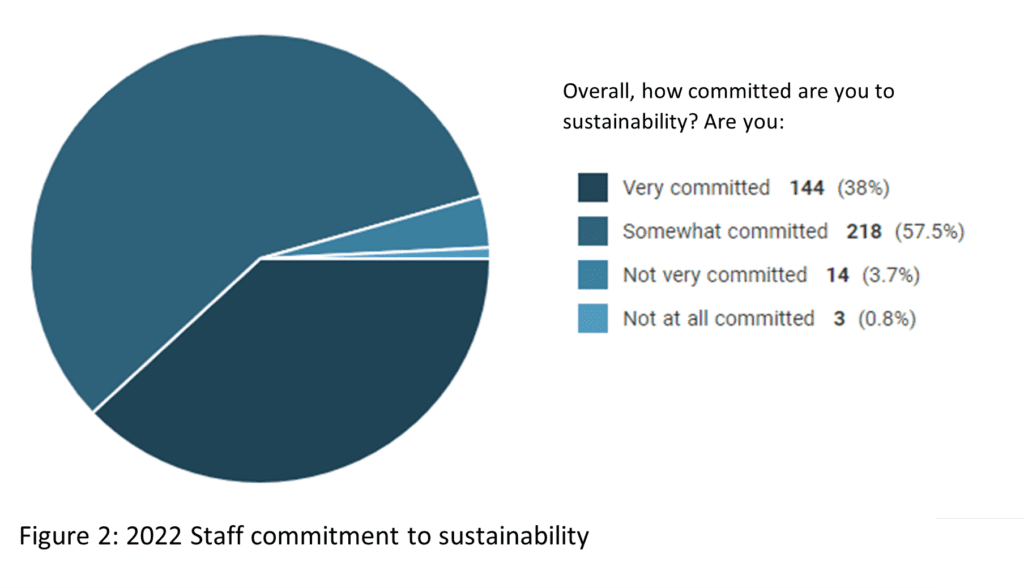 Staff commitment to sustainability remained relatively constant across the two survey years, with results indicating staff are generally more committed to sustainability than students (see Figure 2).